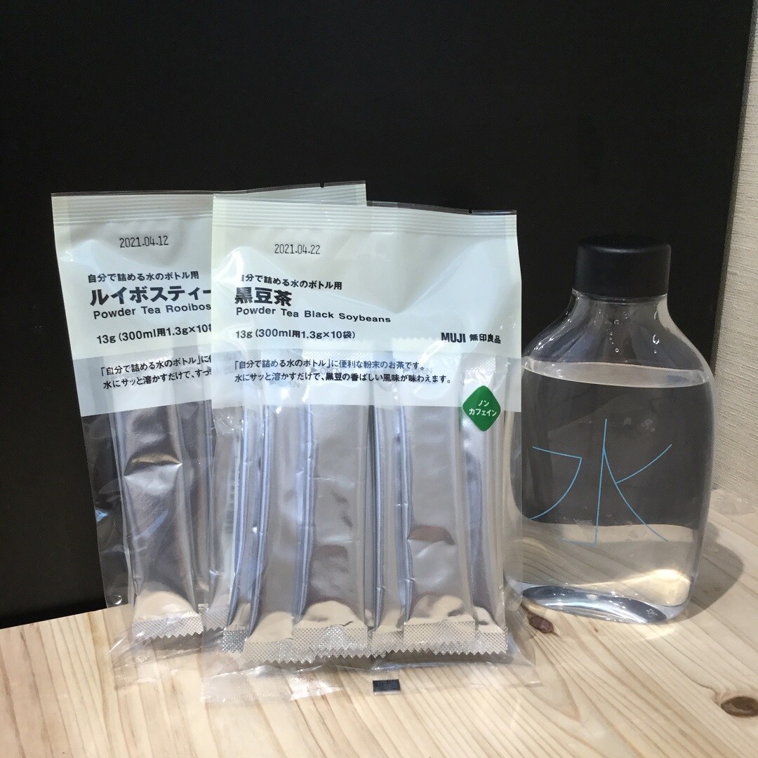 また、『自分で詰める水のボトル』にぴったりの、粉末のお茶もご用意しています。