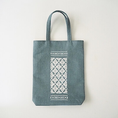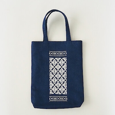「こぎん刺し」は青森県津軽地方に伝わる刺繍のこと。津軽地方では、作業着のことをこぎん(小布)と呼び、作業着に刺し子がされていたためこの名前がついたとか。北国・津軽では綿の栽培が困難で、衣服の多くは麻布製。繊維が粗く風通しがよい麻布に、冬場の寒さを防ぐ目的で、糸で布目を埋め保温性を高めました。津軽の女性たちが競って生み出した幾何学模様には、一針一針丹念に刺す作り手の根気と繊細さが宿っています。